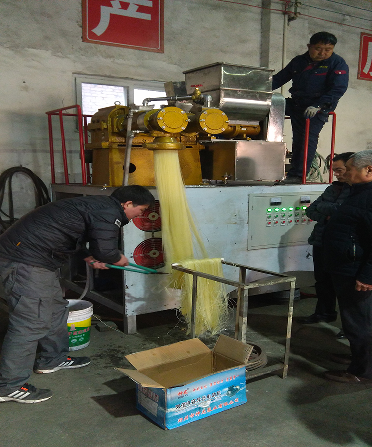 所以大家盡可放心,這不一大早就有客戶來廠試機了,客戶坐了一夜火車就是為了帶著原材料來我們米線機廠家進行試機,話不多說馬上給張老板安排上。